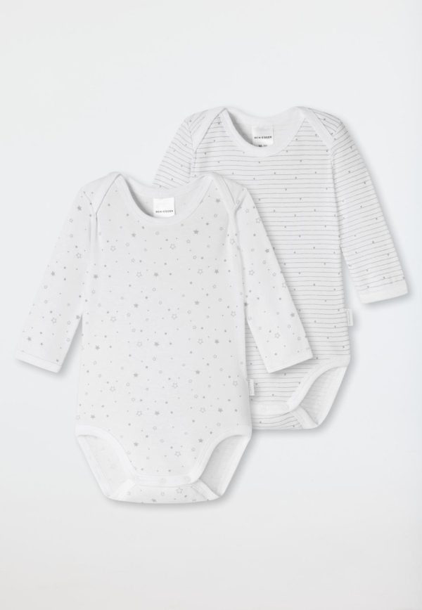 - weiße, bedruckte Langarm-Babybodys Unisex im praktischen Doppelpack