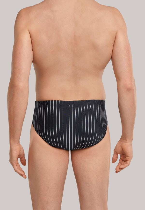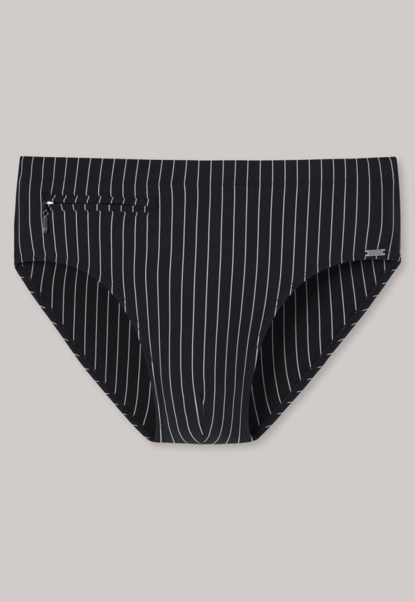 - schwarzer Herren-Badeslip mit weißen Streifen
