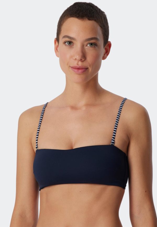 - dunkelblaues, gefüttertes Bandeau-Bikini-Top für Damen