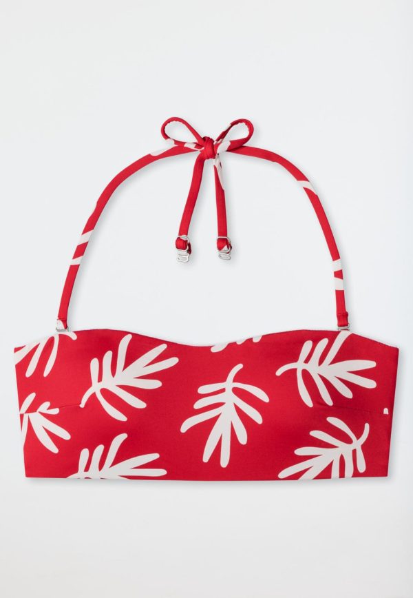 - rotes, gefüttertes Bandeau-Bikini-Top für Damen mit Korallendesign