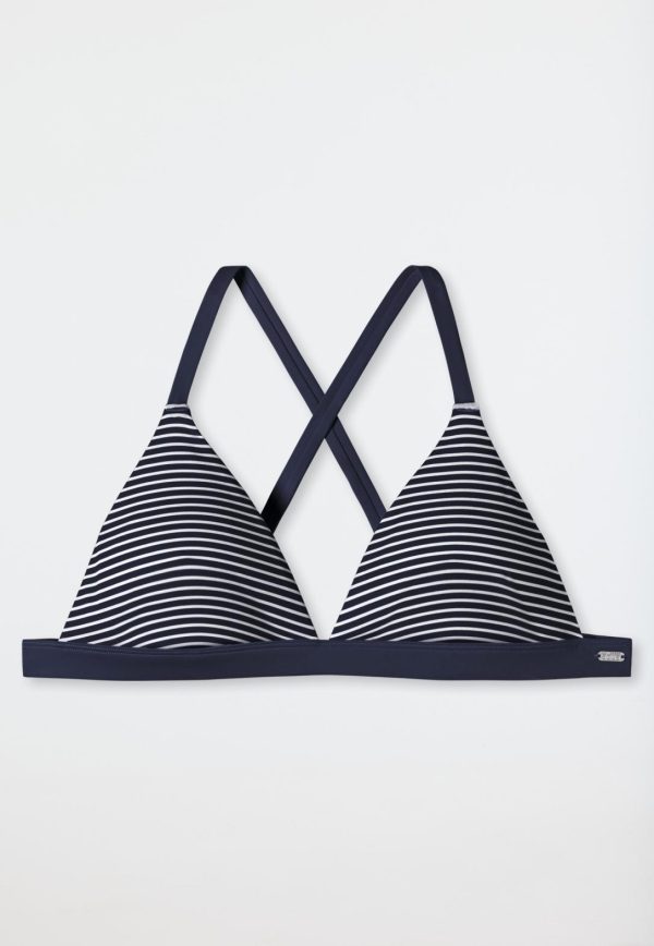 - dunkelblaues Triangel-Bikini-Top für Damen mit Streifendesign