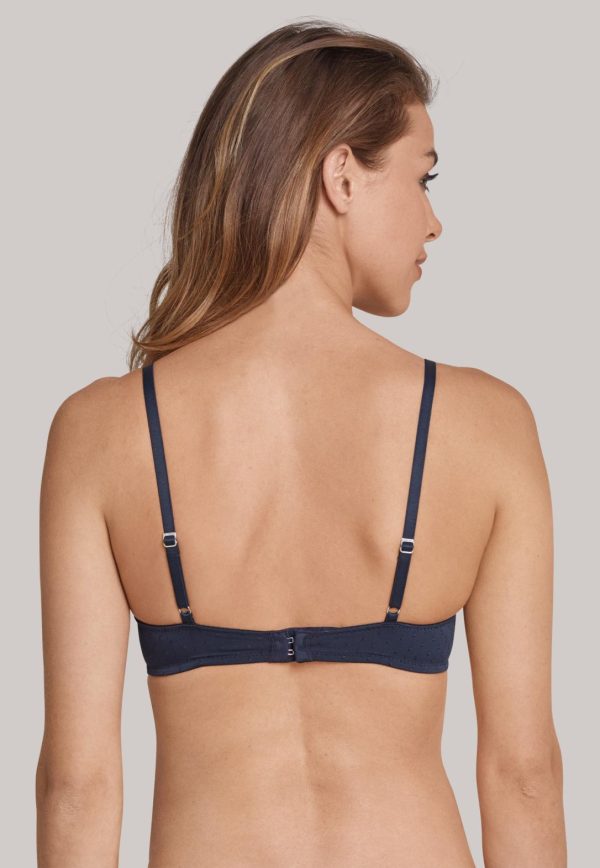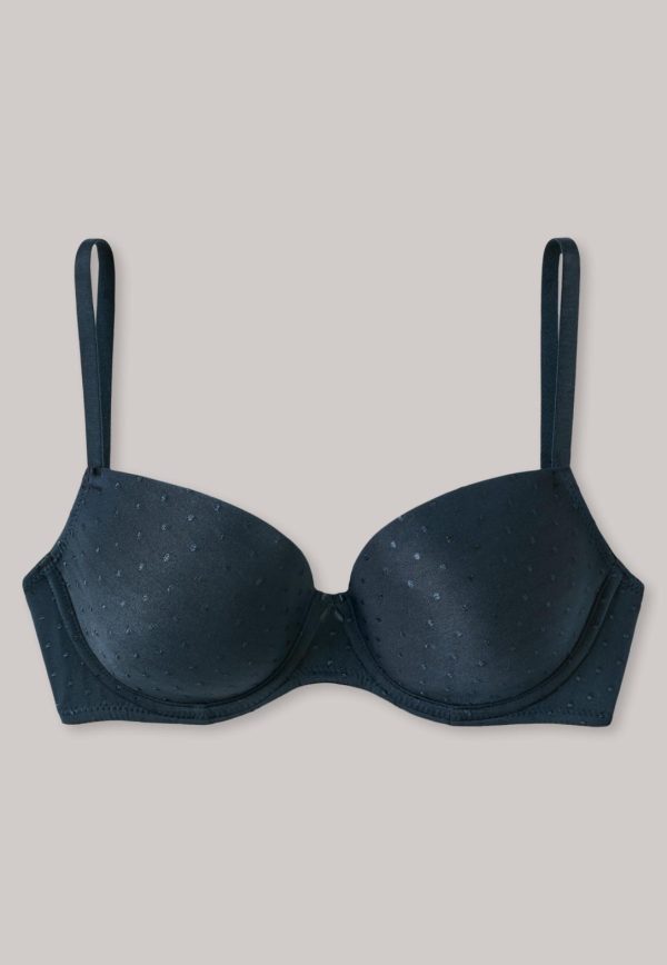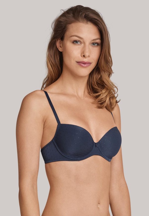Damen, die Wäsche in dezenter Eleganz mögen, werden diesen nachtblauen Bügel-BH mit Schale lieben! Hübsche, tonale Punkte und das Zierschleifchen am Mittelsteg sind schon alles, um dem BH einen Hauch Exklusivität zu schenken, die in feiner Micro-Qualität wunderbar weich auf der Haut spürbar wird. Seitliche Stäbchen sowie verstellbare, innen besonders softe Träger tragen den komfortablen Part bei und machen den gemoldeten BH zum neuen Lieblingsstück in perfekter Passform!