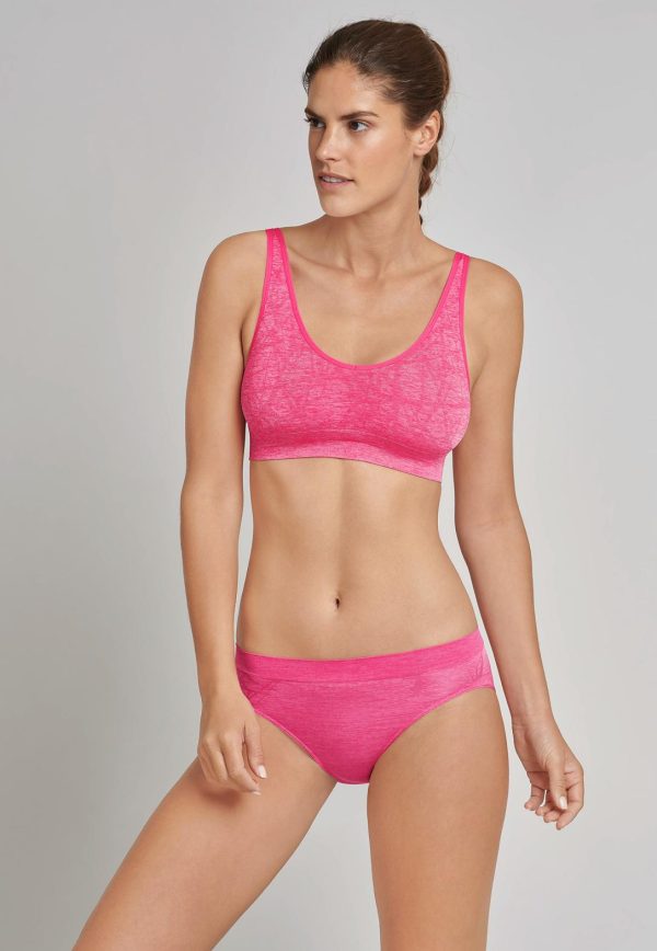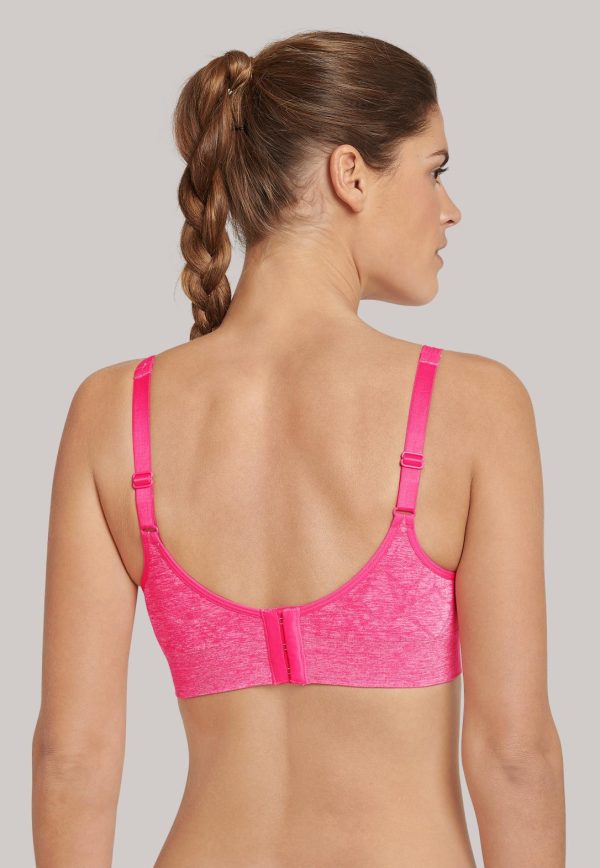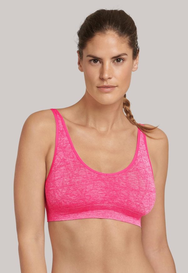 Ob zum lockeren Workout, Yoga oder im turbulenten Alltag, dieses modisch gemusterte Bustier lässt aktive Damen nicht im Stich! Das Seamless-Material kommt dabei ohne störende Seitennähte aus und sorgt mit den atmungsaktiven Mesh-Einsätzen für ein ausgewogenes Körperklima. Weitere Highlights setzen der 4-fache Verschluss, herausnehmbare Air-Hole-Pads und die extra-breiten, längen-verstellbaren Träger. Ein absoluter Fitness-Liebling in bester SCHIESSER-Qualität!