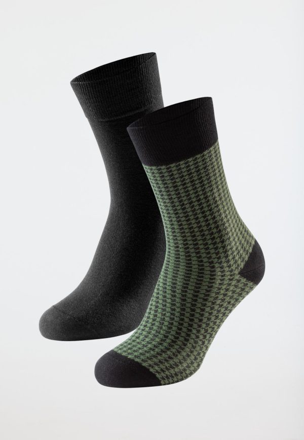 - Socken für Herren im Doppelpack, 1x uni in Braun 1x Braun-Grün gemustert