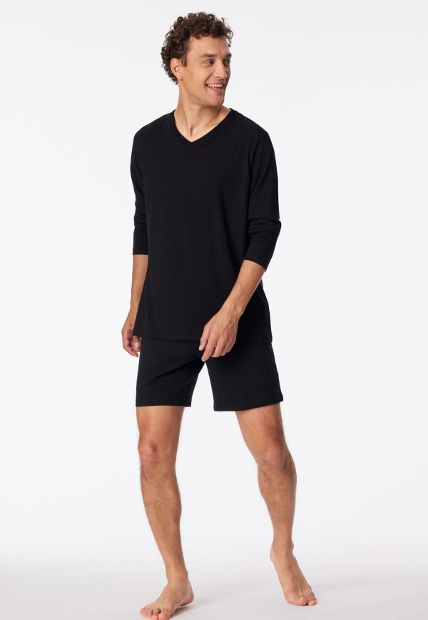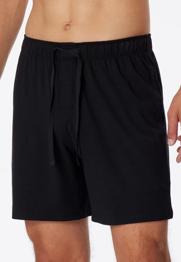 Diese schwarzen Long Boxer sind genau das Richtige für entspannte Tage und Nächte, liebe Herren! Fließend weicher Single Jersey aus Baumwolle und Modal verspricht dabei höchsten Tragekomfort, fühlt sich angenehm glatt an und bleibt dank 5 % Elastan jederzeit in Topform. Die Shorts sind mit einem Bindeband am elastischen Bund, einer verdeckten, funktionalen Knopfleiste und seitlichen Taschen ausgestattet – alles, was ein Basic in bester SCHIESSER-Qualität mitbringen sollte!