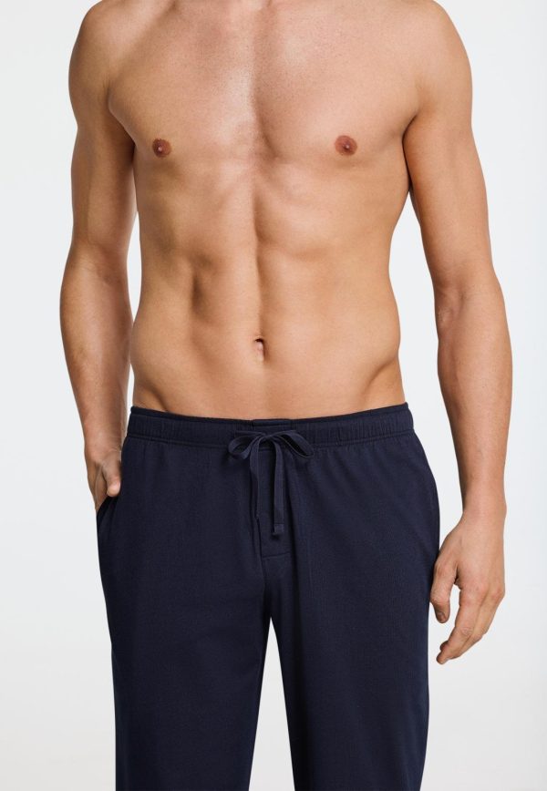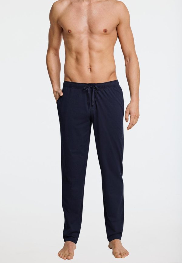 Diese dunkelblaue Herrenhose ist genau das Richtige für entspannte Tage und Nächte! Die lockere Jogginghose überzeugt durch ihr weiches Jersey-Material aus 100 % Baumwolle und ist mit seitlichen Taschen sowie einer funktionalen Knopfleiste ausgestattet. Das Bindeband am elastischen Bund setzt ein weiteres, praktisches Details. Ein bequemes Basic in bester SCHIESSER-Qualität! Auch in besonderen Größen erhältlich!