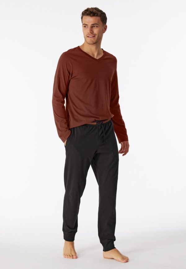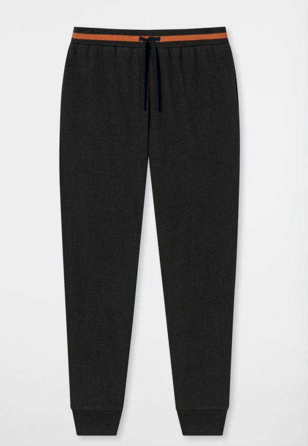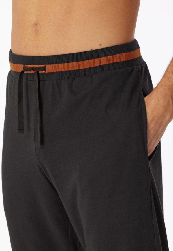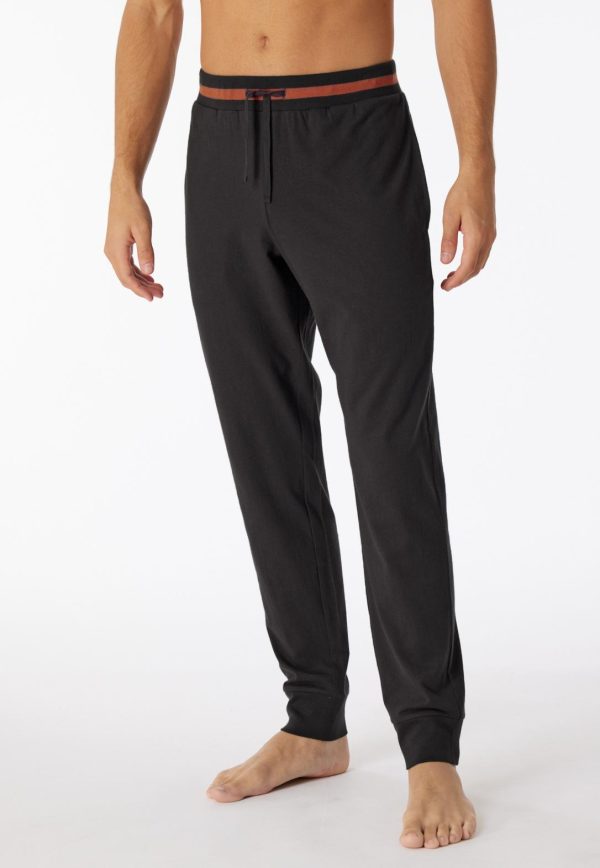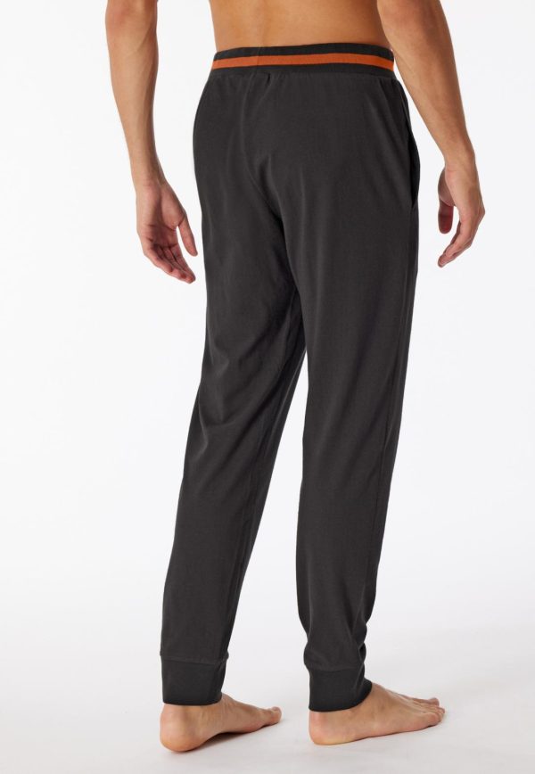 - anthrazitfarbene, lange Herren-Loungehose mit gestreiftem Bund in Terracotta