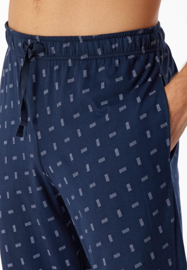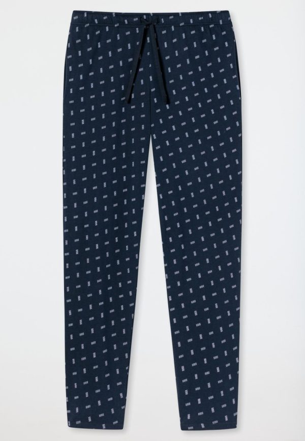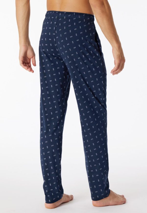 - lange, nachtblaue Herren-Loungehose mit fliederfarbenem Grafikmuster