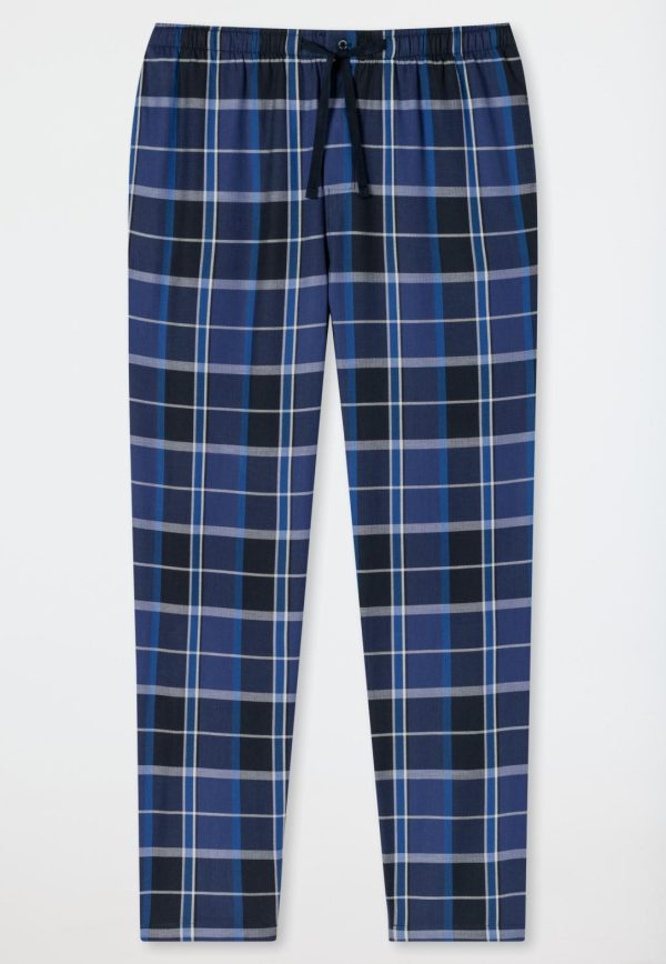 - lange, karierte Herren-Loungehose in Nachtblau, Royalblau, Navy und Flieder