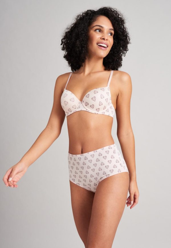 Ein charmanter Hingucker im angesagten Landhaus-Style: Dieser zartrosafarbene Bügel-BH mit Push-up-Effekt aus der modischen SCHIESSER-Serie „I mog di“ zaubert ein Lächeln auf Ihr Gesicht! Ein Alloverprint mit Herzchen und „I mog di“-Schriftzug in Burgund schenkt ihm seinen verspielten Look. Hochwertige Modalware mit Elasthan liegt weich auf der Haut. Die gepaddeten Softcups formen ein wunderschönes Dekolleté. Ein Lieblingsstück in bester SCHIESSER-Qualität!