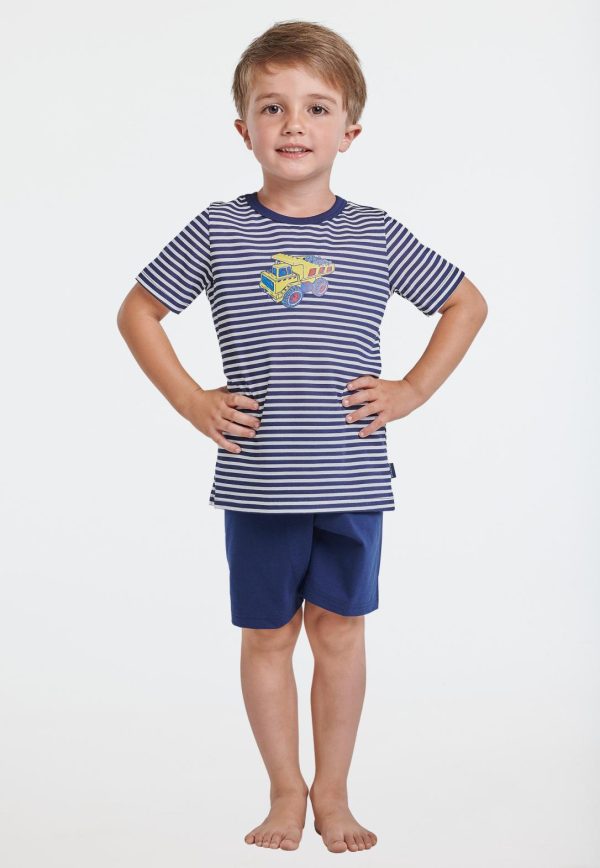 - kurzer Schlafanzug für Jungen mit Ringel-Shirt in Dunkelblau-Weiß