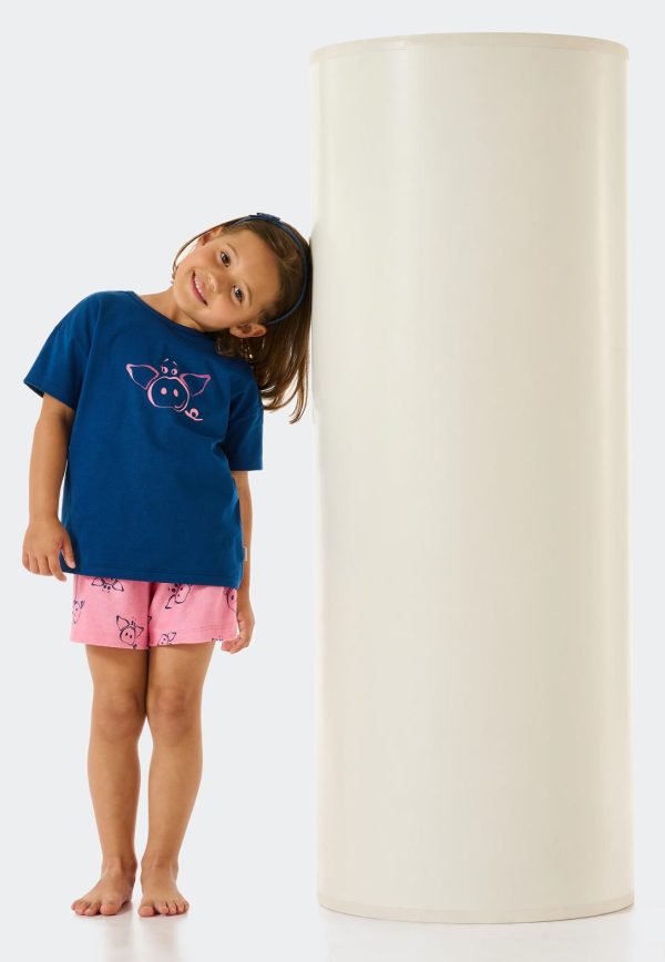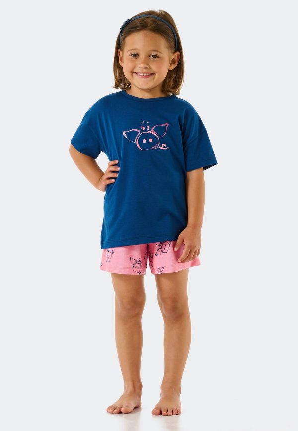 Schlafanzug Kurz Organic Cotton Schweine Blau Girls World Blau | Kinder SCHIESSER Nachtwäsche