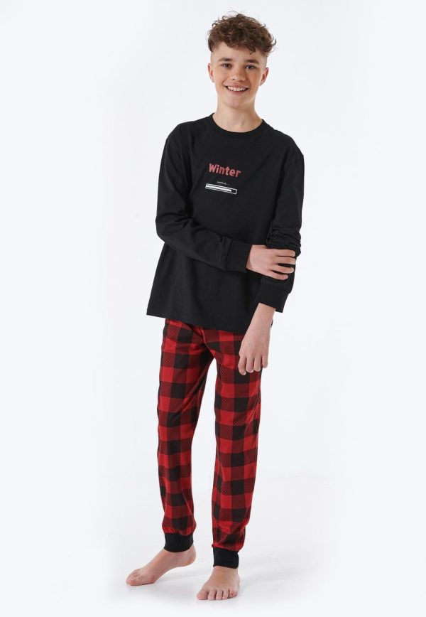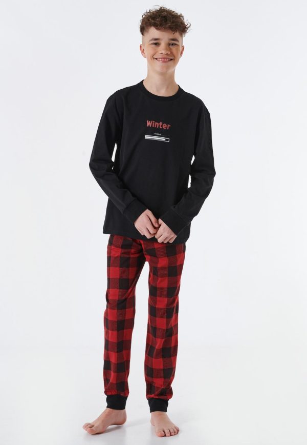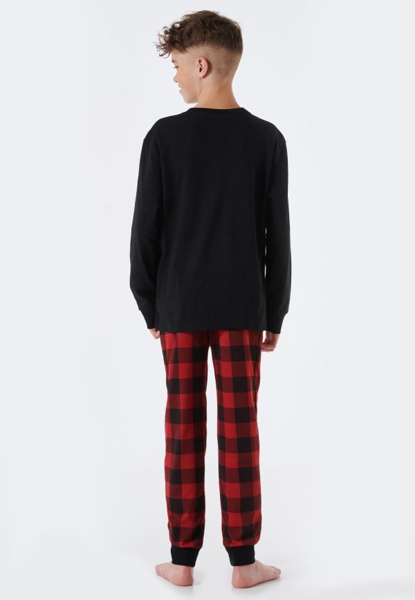 Schlafanzug Lang Bündchen Karos Winter Schwarz Family Schwarz | Kinder SCHIESSER Nachtwäsche