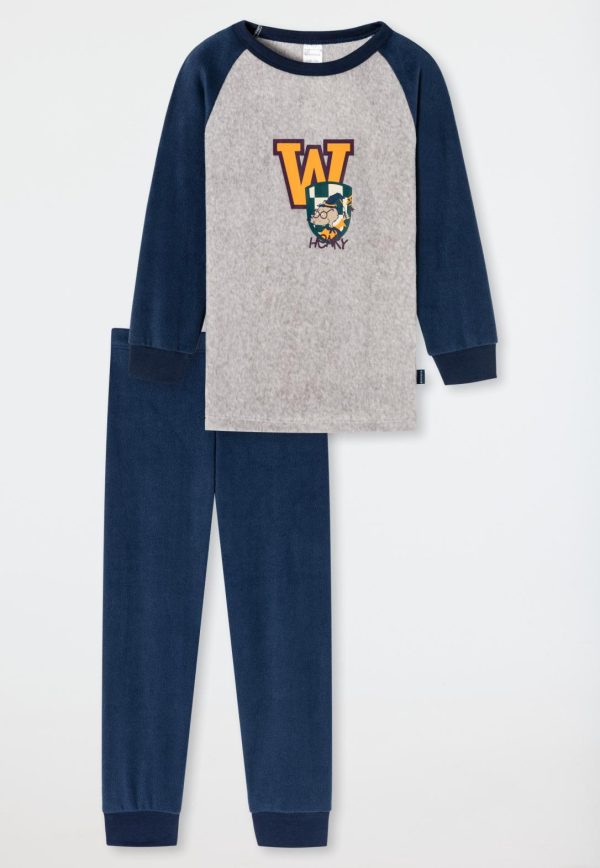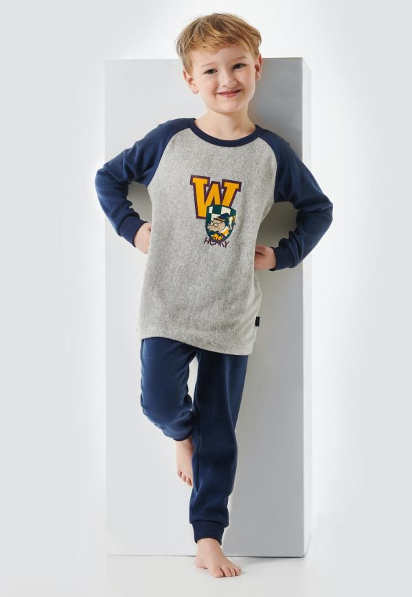 Schlafanzug Lang Fleece Bündchen Zauberer College Grau-Meliert Rat Henry Grau-mel. | Kinder SCHIESSER Nachtwäsche