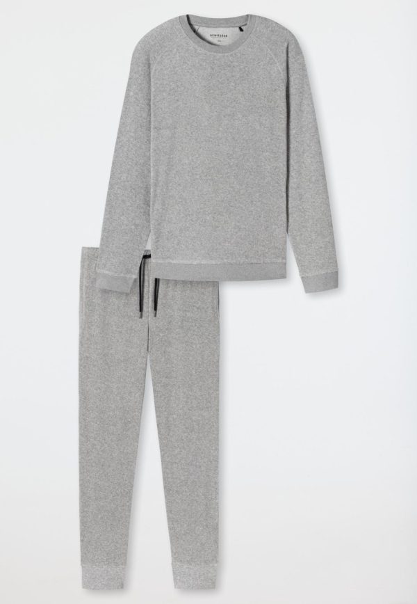 - langer, grau-melierter Schlafanzug für Herren