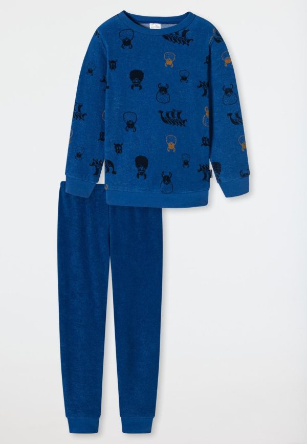Schlafanzug Lang Frottee Organic Cotton Bündchen Wikinger Blau Boys World Blau | Kinder SCHIESSER Nachtwäsche