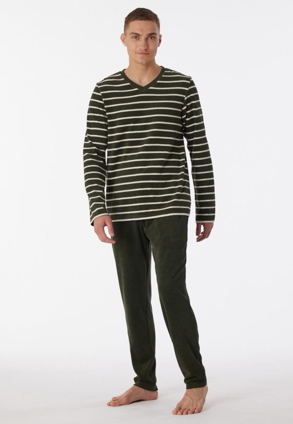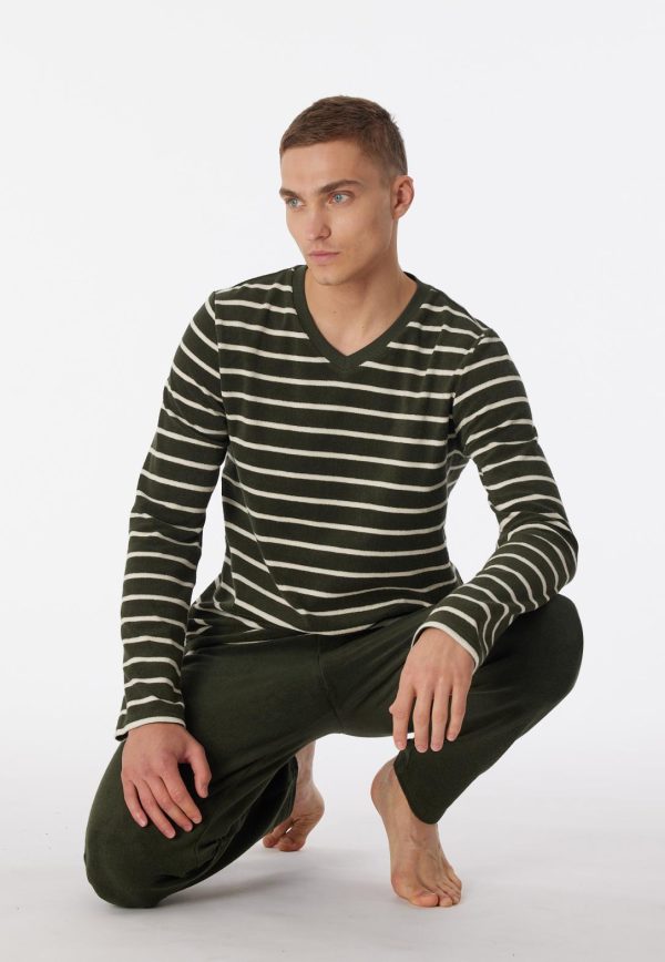 Schlafanzug Lang Frottee V-Ausschnitt Streifen Dunkelgrün Warming Nightwear Dunkelgrün | Herren SCHIESSER Schlafanzüge
