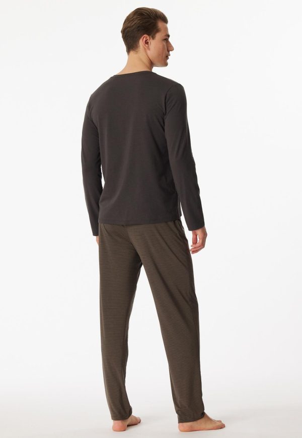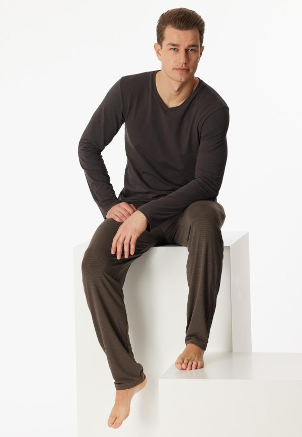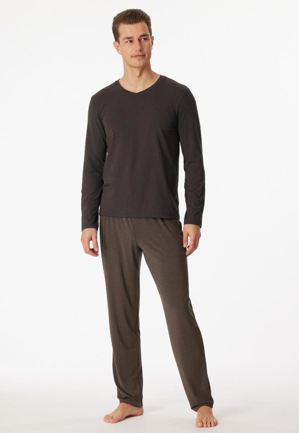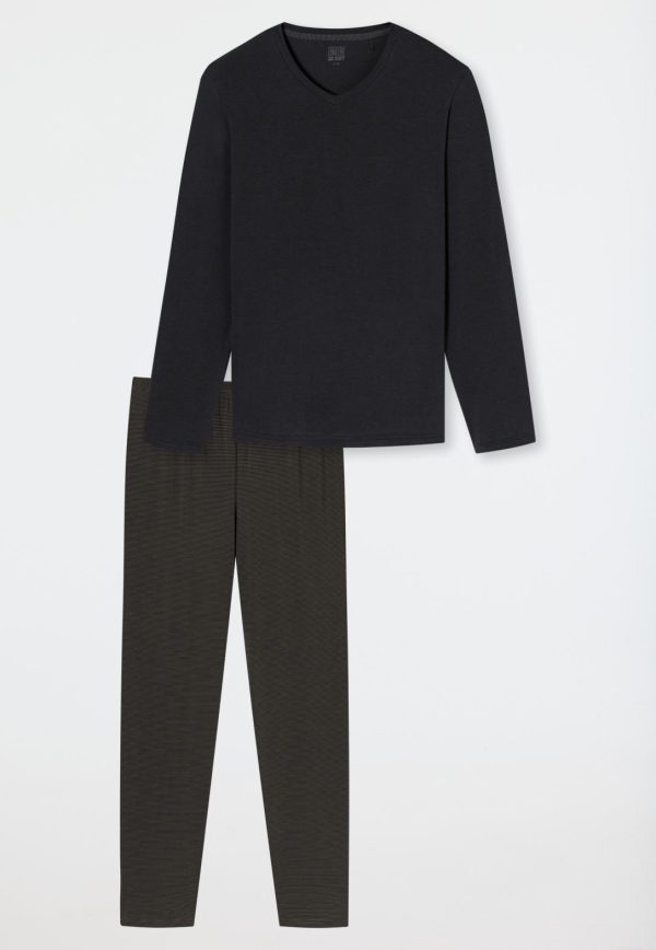 Schlafanzug Lang Modal V-Ausschnitt Ringel Anthrazit Long Life Soft Anthrazit | Herren SCHIESSER Schlafanzüge
