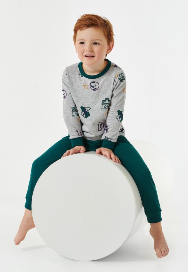 - bequeme dunkelgrüne Bündchen an den Arm- und Beinabschlüssen
