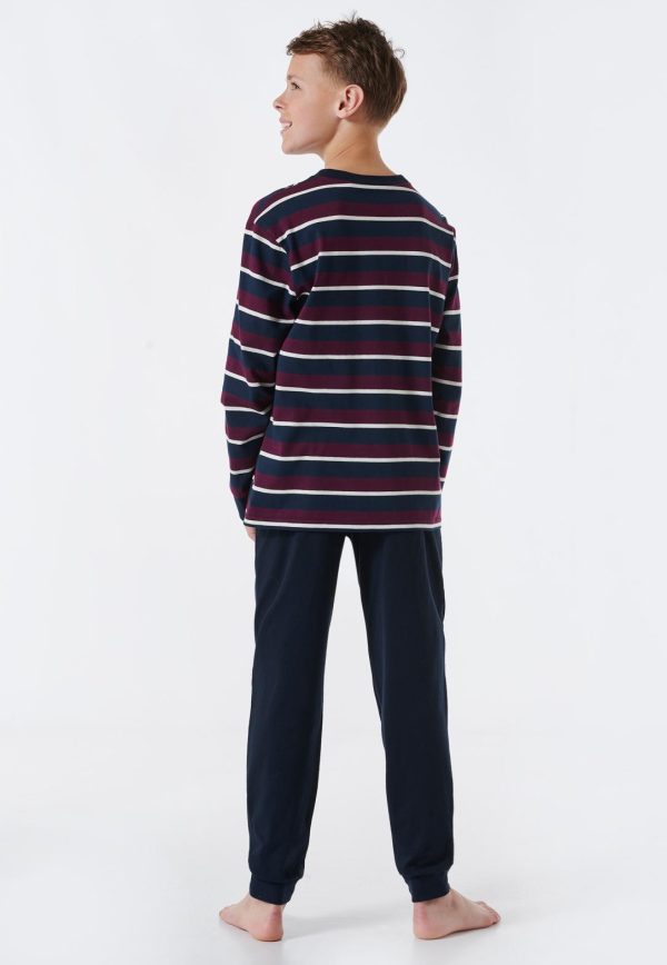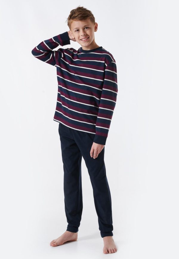 - langer Jungenschlafanzug mit gestreiftem Langarmshirt in Aubergine, Off-white und Nachtblau