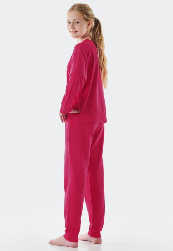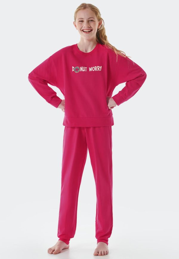 - langer, pinkfarbener Mädchen-Schlafanzug mit „DONUT WORRY“-Schriftzug