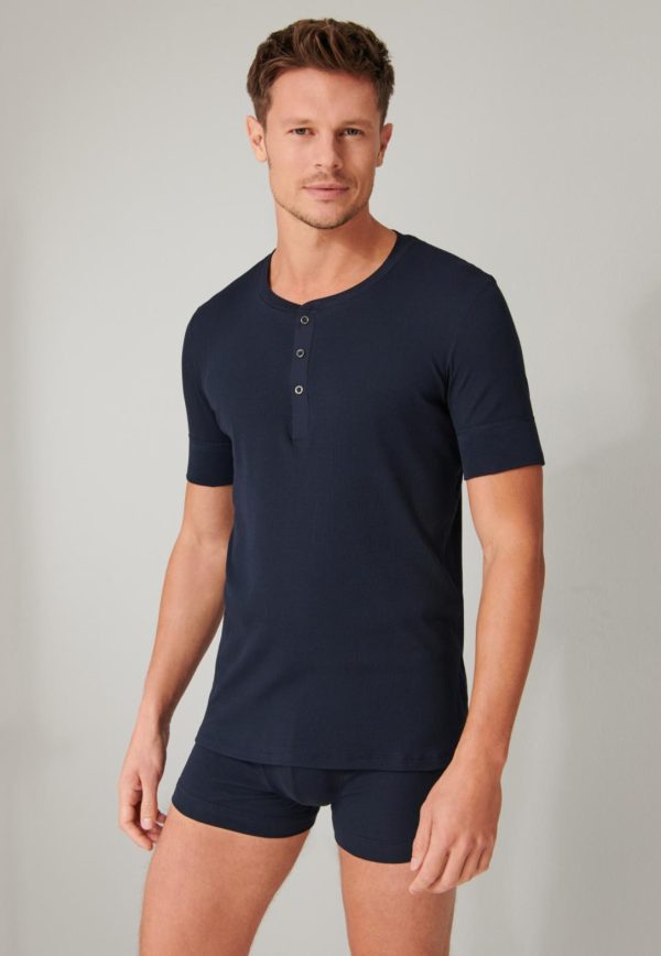 Kultige Basics für ganze Kerle: Anziehen und wohlfühlen, so lautet das Motto dieses Herrenkurzarmshirts aus der SCHIESSER-Serie „Retro Rib“. Elastischer Doppelripp aus Organic Cotton fühlt sich dabei nicht nur besonders leicht und weich an auf der Haut, sondern strahlt in körperbetonter Schnittform und mit der Metall-Knopfleiste zudem pure Männlichkeit aus. Ein bequemes, kerniges Shirt in bester, nachhaltiger SCHIESSER-Qualität!