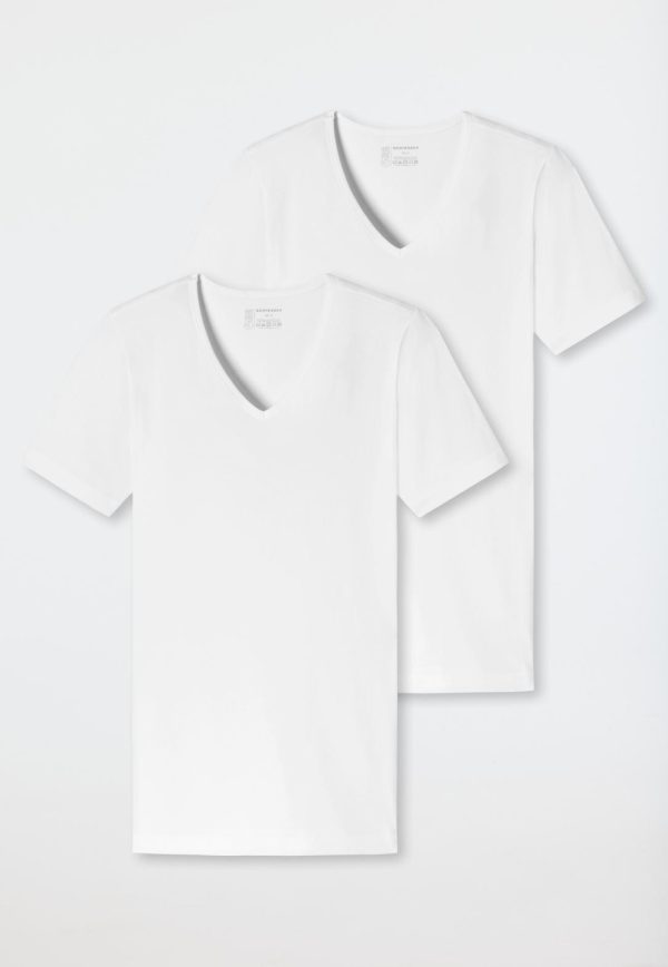 Natürlichkeit im Doppelpack: Diese Kurzarm-Shirts sind genau das Richtige für Herren, die unkomplizierte, zuverlässige Unterwäsche schätzen. Mit dem Material-Mix aus 95% nachhaltigem Organic Cotton und 5% Elastan sorgt das puristische Wäschepack für ein angenehmes Tragegefühl und jede Menge Komfort im Alltag. Ohne Probleme lässt sich das Duo mit seinem, tiefen V-Ausschnitt auch unter dem Business-Hemd tragen und wird so zum neuen Lieblingsteil in bester SCHIESSER-Qualität!