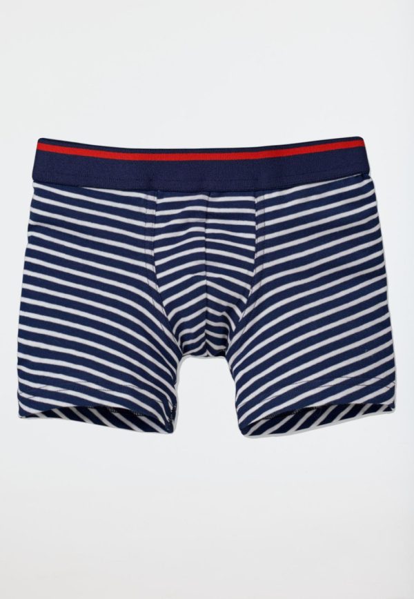 - dunkelblau-weiß geringelte Jungenshorts