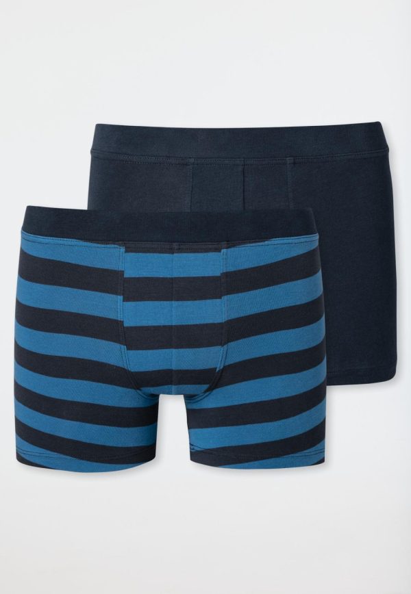 Superbequemes Material gesellt sich bei diesen beiden Jungenshorts zu einem coolen Design! Klassisches Dunkelblau zeigt sich hier in einem Uni-Modell und in einer Variante mit blauen Blockringeln. Beide Shorts punkten auch hautnah mit elastischem Single Jersey aus Organic Cotton, der sich super soft anfühlt und im Zusammenspiel mit dem Gummibund immer in Topform bleibt. Ein echt starker Wäsche-Doppelpack in bester SCHIESSER-Qualität!