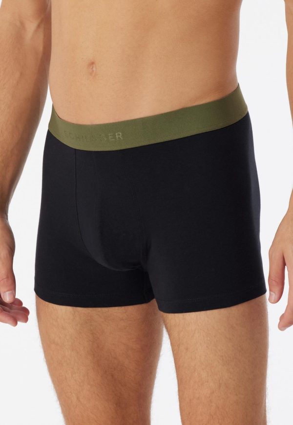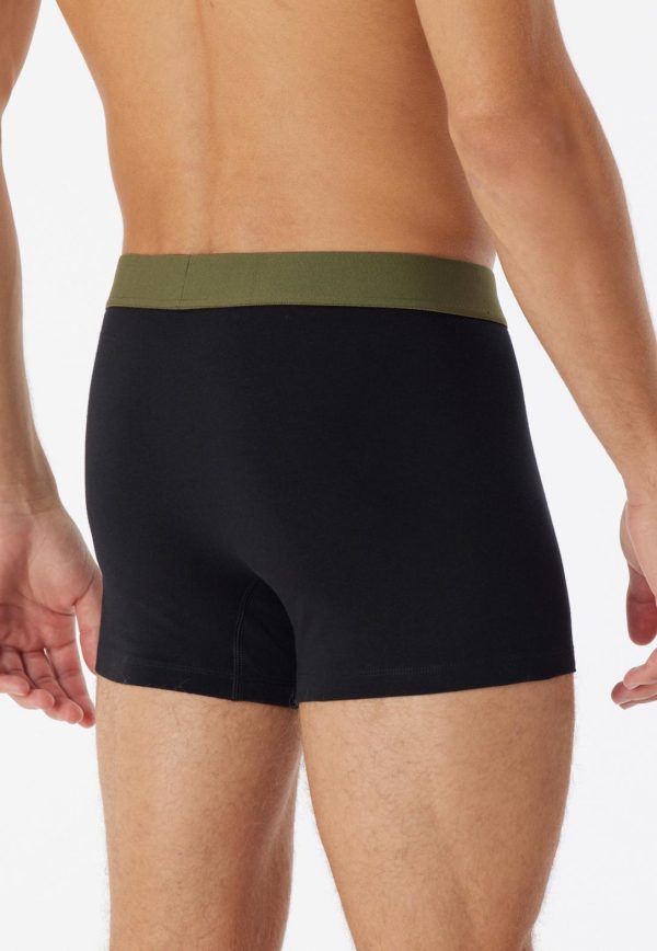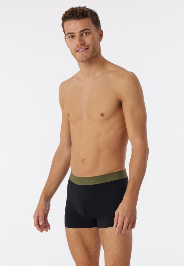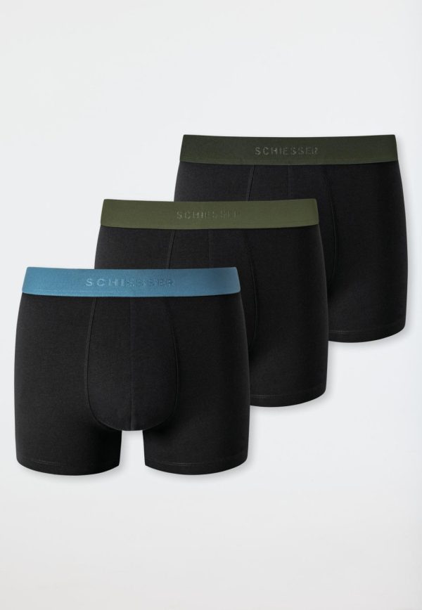 - schwarze Herren-Shorts im 3er-Pack mit farbigem Webgummibund (Grün, Petrol, Oliv)
