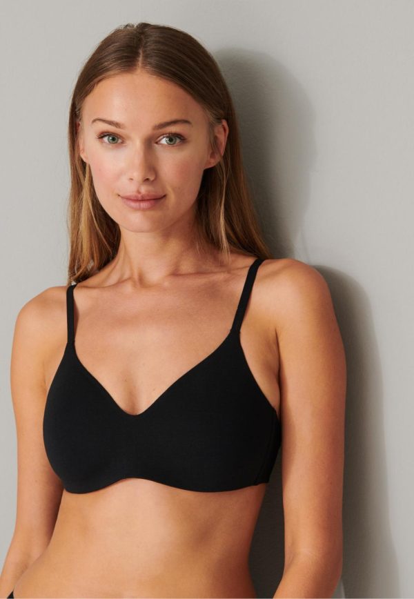 Tagwäsche im puren Look: Dieser Soft-BH aus der beliebten SCHIESSER-Serie „95/5“ verspricht einen optimalen Halt bei höchstem Tragekomfort. Speziell geformte, außergewöhnlich leichte Cups sind das Geheimnis dieses BHs, der sich in elastischem Single Jersey nicht nur seidigweich auf der Haut anfühlt, sondern gleichzeitig mit den schön gebrandeten Trägern auch eine perfekte Passform verspricht. Ideal für Damen, die am liebsten ganz natürliche SCHIESSER-Qualität auf der Haut spüren!