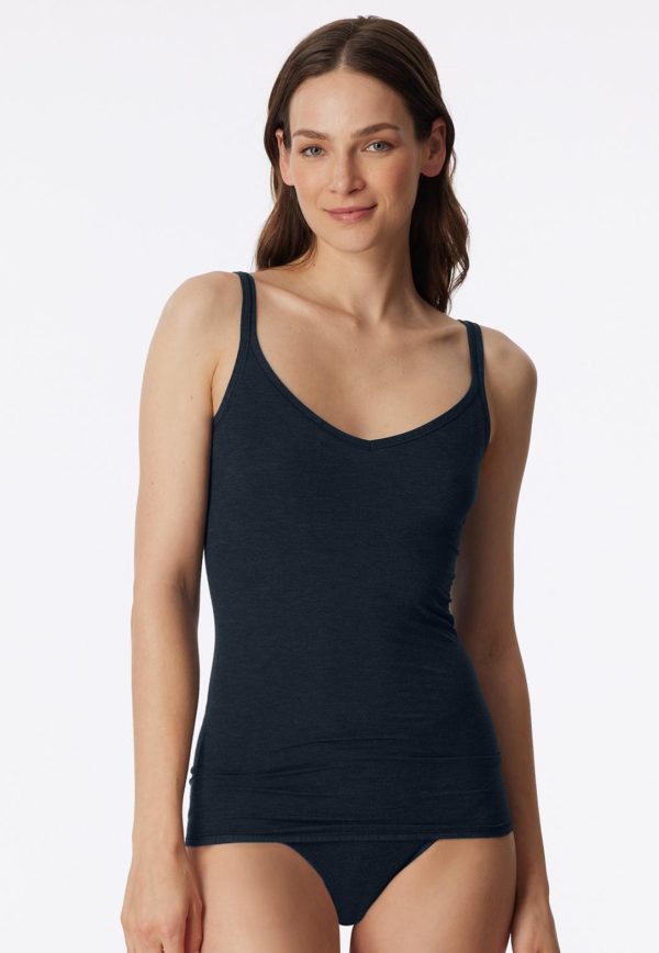 Dieses Spaghetti-Top für Damen ist Ihr Lieblings-Basic für Sport und Freizeit! Das neue Mitglied der „Personal Fit“- Familie steht für funktionales Material und einen puren Look. Der V-Ausschnitt und und die schmalen Träger schenken ihm einen femininen Touch. Elastischer Single Jersey mit Viskose liegt dabei wie maßgeschneidert an, ist atmungsaktiv und temperaturausgleichend. Ein herrlich leichtes Wäschestück mit seidigem Glanz, das jede Bewegung mitmacht: einfach beste SCHIESSER-Qualität!