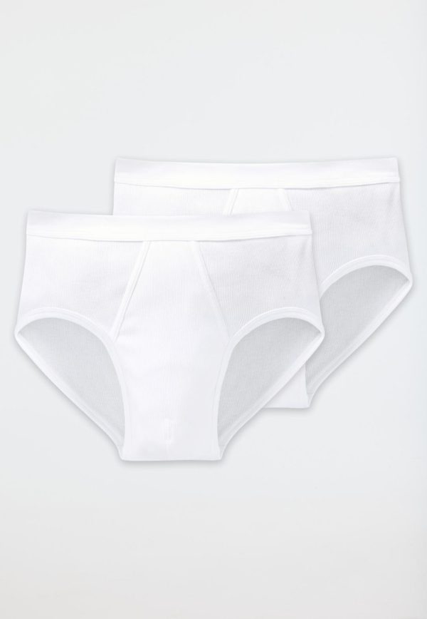 Klassische Wäsche im Doppelpack: Diese beiden, weißen Herren-Sportslips versprechen höchsten Tragekomfort in gewohnt bester SCHIESSER-Qualität. Kerniger Doppelripp schenkt den Slips einen besonders maskulinen Charakter, der in 100% supergekämmter Baumwolle und im Zusammenspiel mit dem bequemen Softbund angenehm weich auf der Haut spürbar wird. Ideal für Herren, die langlebige und strapazierfähige Wäsche im zeitlos-puren Design schätzen.