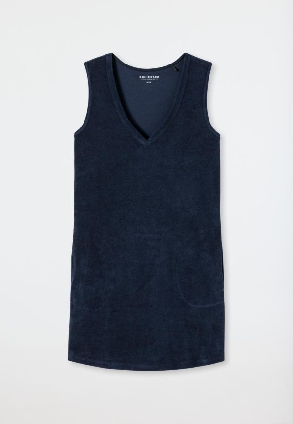 Lässig und wunderbar retro: Dieses ärmellose, dunkelblaue Damen-Strandkleid ist die perfekte Wahl für einen sonnigen Tag an Meer oder Pool! Mit seiner den Körper umspielenden Silhouette sitzt es herrlich bequem. Modische Details sind der der eingefasste V-Ausschnitt und die seitlichen Taschen. Und erst das Material: Weicher, griffiger Frottee aus nachhaltigem Organic Cotton fühlt sich einfach gut an. Reinschlüpfen und den Sommer in bester SCHIESSER-Qualität genießen!