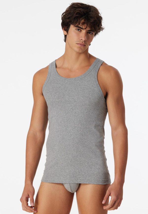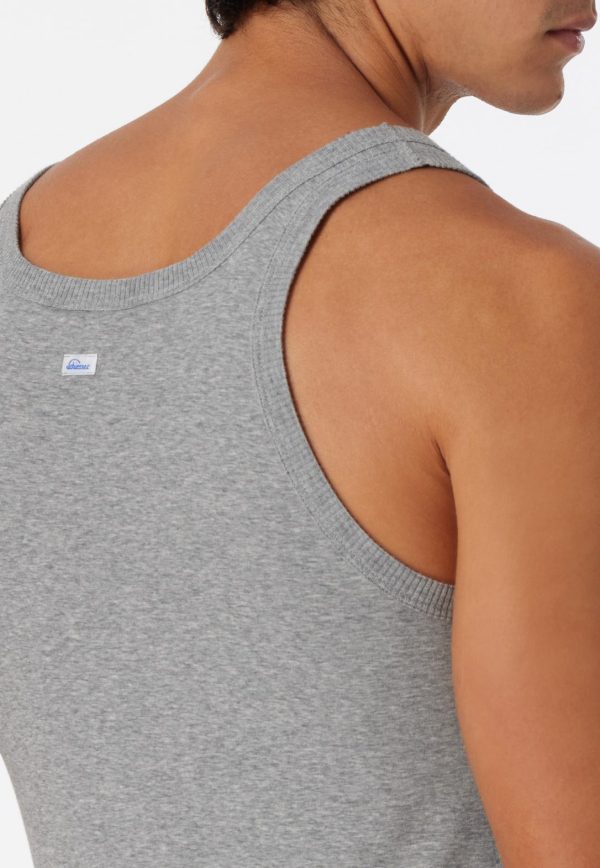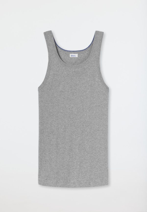 Der Komfortable: Dieses grau melierte Herren-Tank-Top aus der exklusiven Revival-Kollektion Ludwig verkörpert etablierte Wäschewerte im natürlichen Design. Feinster Feinripp aus 95% erlesener Baumwolle und 5% Elastan bildet dabei die Basis für eine optimale Passform und bietet im Zusammenspiel mit den Flachstrickrändern aus traditionellem Doppelripp höchsten Tragekomfort. Ein wahrer Unterwäsche-Klassiker in zeitgemäßer Adaption.