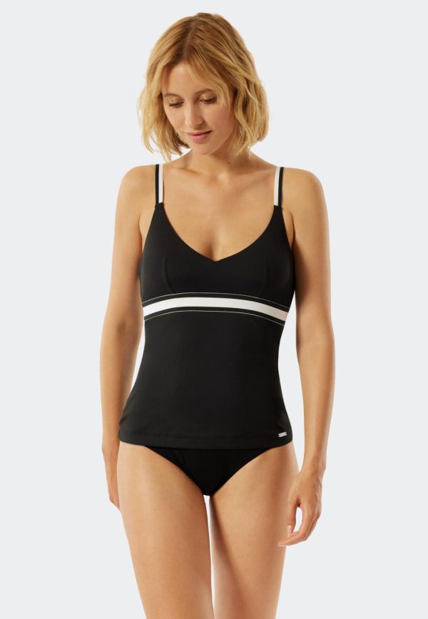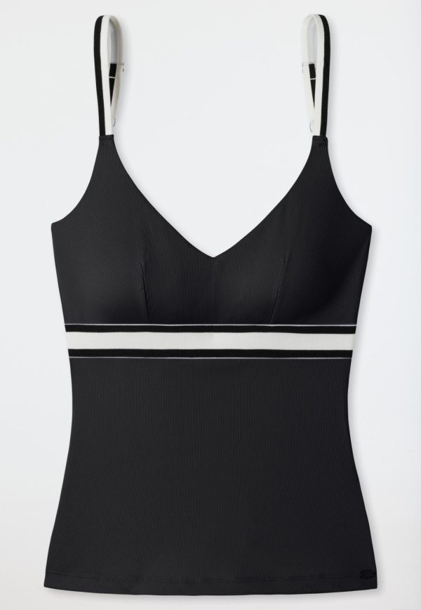 - schwarzes Tankini-Top für Damen in modischer Ripp-Optik