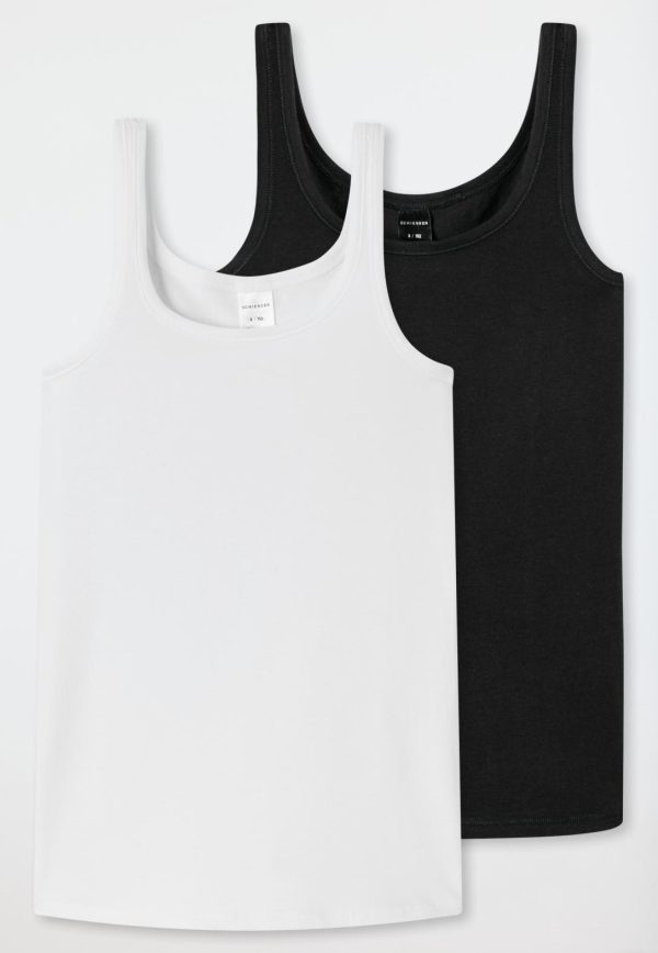 In diesem Doppelpack erwarten coole Girls zwei superbequeme Tops in Schwarz und Weiß. Natürlich stimmt auch das Feeling, denn die beiden Unterhemden fühlen sich dank elastischem Single Jersey aus Organic Cotton wunderbar weich an und machen jede Bewegung garantiert bequem mit! Ein trendy Wäsche-Duo in bester SCHIESSER-Qualität!