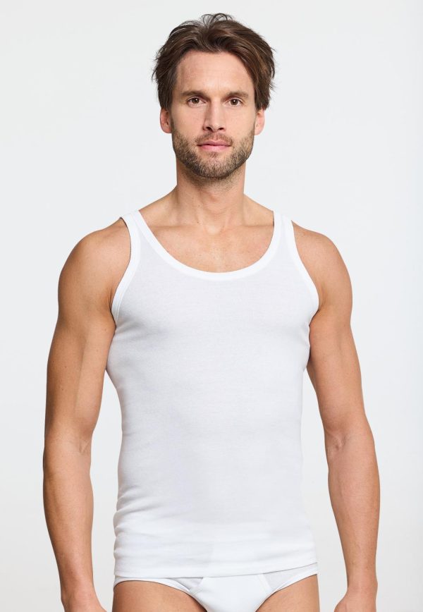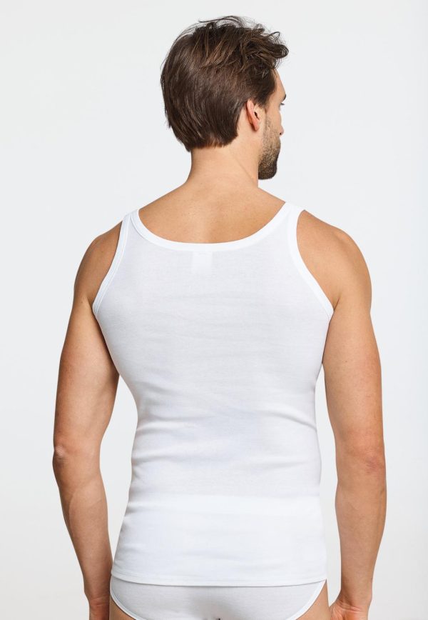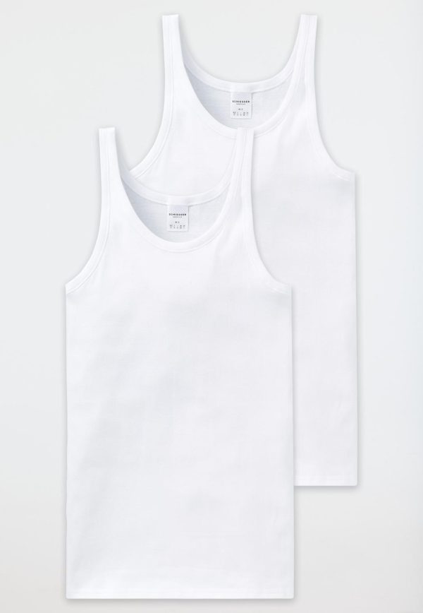Wäsche-Basics im Doppelpack: Diese beiden, weißen Herrenunterhemden sind die ideale Kombination aus purem Design und bestem Material. 100% supergekämmte Baumwolle in Feinripp-Qualität fühlt sich dabei nicht nur besonders weich an auf der Haut, sondern verspricht zudem höchsten Tragekomfort. Die ideale Unterwäsche für Herren, die bequeme, strapazierfähige und langlebige Produkte in gewohnt bester SCHIESSER-Qualität schätzen.