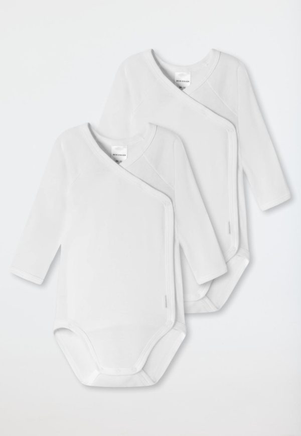 - weiße Langarm-Wickelbodys Unisex im praktischen Doppelpack